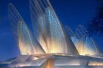 De spectaculaire architectuur – ontworpen door Foster + Partners – met zijn iconische “valkvleugel”-torens, maakt het één van de meest indrukwekkende culturele projecten in de regio.